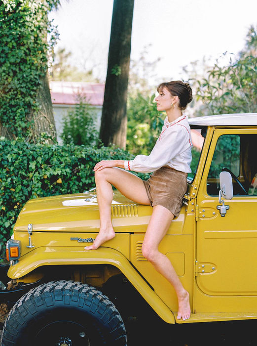 Shot on Kodak Gold 200 120 film with my Contax 645 + 80mm lens, studio strobes against an olive savage seamless backdrop. Outdoor shots taken with natural light, featuring my lovely mustard yellow Toyota FJ45 truck.